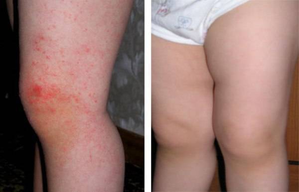 У самых маленьких детей (до года) аллергические высыпания, как правило, появляются в первую очередь на щеках, шее, наружной стороне предплечий, ягодицах. В первые несколько часов аллергическая сыпь выглядит как «лихорадочные» пятна – кожа покрывается ярко-красными пятнышками, которые затем сливаются в одно большое. Кожа на покрасневших местах слегка отечна – покраснения немного возвышаются по сравнению с нормально окрашенными участками кожи. Затем на коже начинают формироваться крошечные пузырьки, наполненные прозрачной жидкостью. Ребенок часто становится раздражительным и капризным – сыпь вызывает нестерпимый зуд, и малыш может расчесывать кожу, повреждая пузырьки.