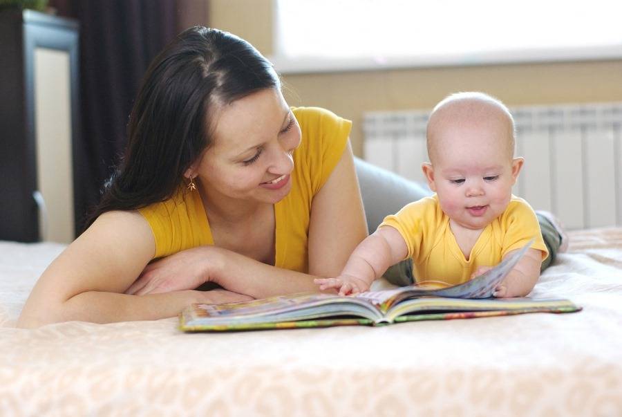 Первые игры должны развивать у ребёнка слух и вызывать проявления разных эмоций. Для начала достаточно читать сказки и книги в лицах. Эмоции героев родители передают своей интонацией, что подстёгивает малыша к развитию речи. Маме желательно уложить кроху в кроватку и прочесть ему сказку с большим содержанием диалогов. Произносить диалоги нужно выразительно, отображая мимикой эмоциональное состояние героев. Ребёнок будет внимательно слушать рассказ и следить за поведением матери. Со временем он начнёт воспринимать эмоции и издавать звуки в ответ.
