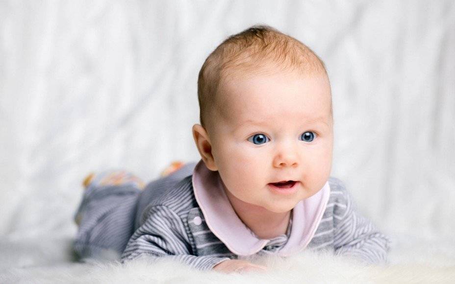 - лежа на животе, кроха пытается поднять голову и удержать ее на весу;