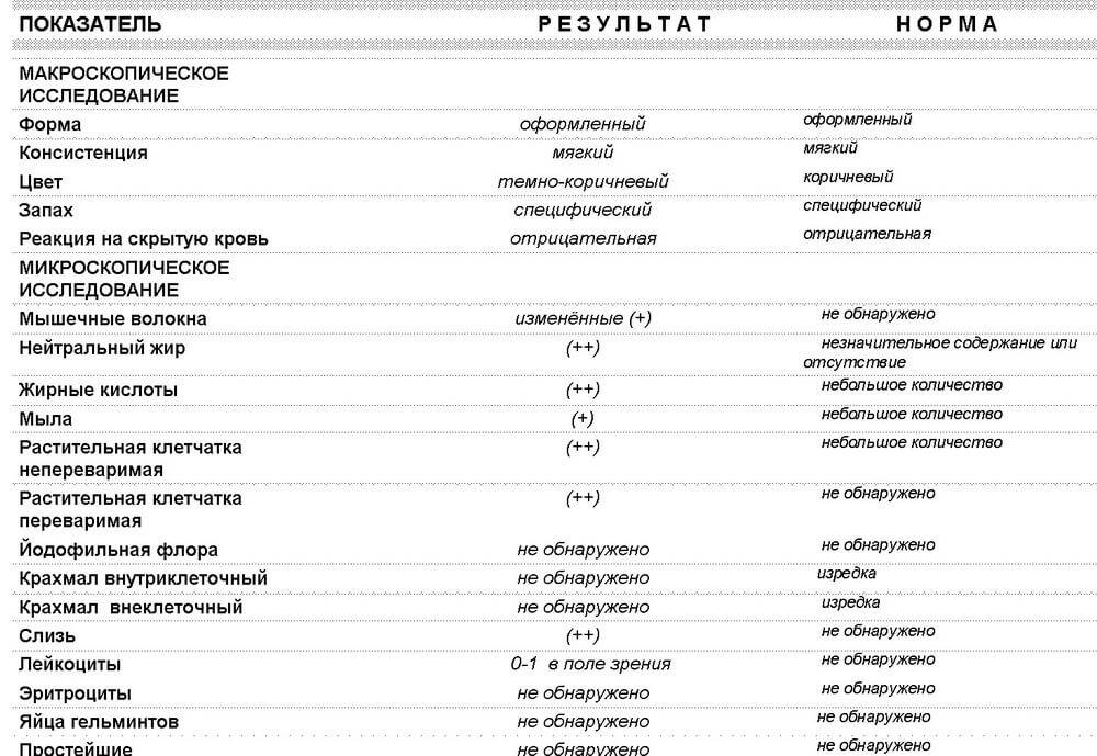 Волноваться не о чем, если специалисты выявили в каловых массах большое количество переработанных частиц еды, немножко мышечных волокон и столько же жирных кислот.