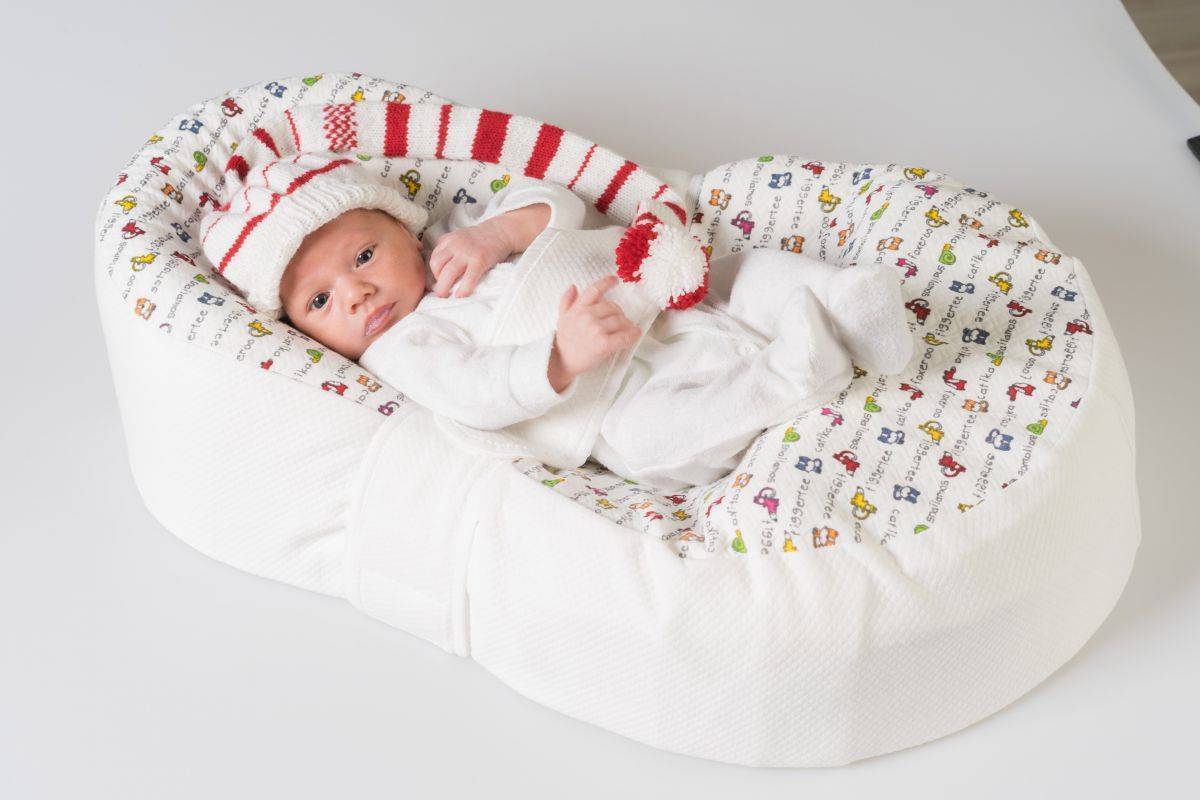 Первым делом стоит отрегулировать размер приспособления, учитывая габариты младенца. Для этого снимается наволочка с изделия, малыш укладывается головкой к сужающейся области. Ограничитель должен быть расположен прямо под ягодицами крохи, чтобы он не мог сползти вниз. Ножки подняты кверху так, чтобы ребенок не стал отталкиваться от бортиков. После можно одеть наволочку и начать пользоваться коконом.