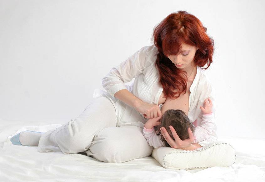 Важно! Необходимо следить, чтобы малыш лежал на подушке не слишком высоко, в противном случае ему будет трудно захватывать грудь