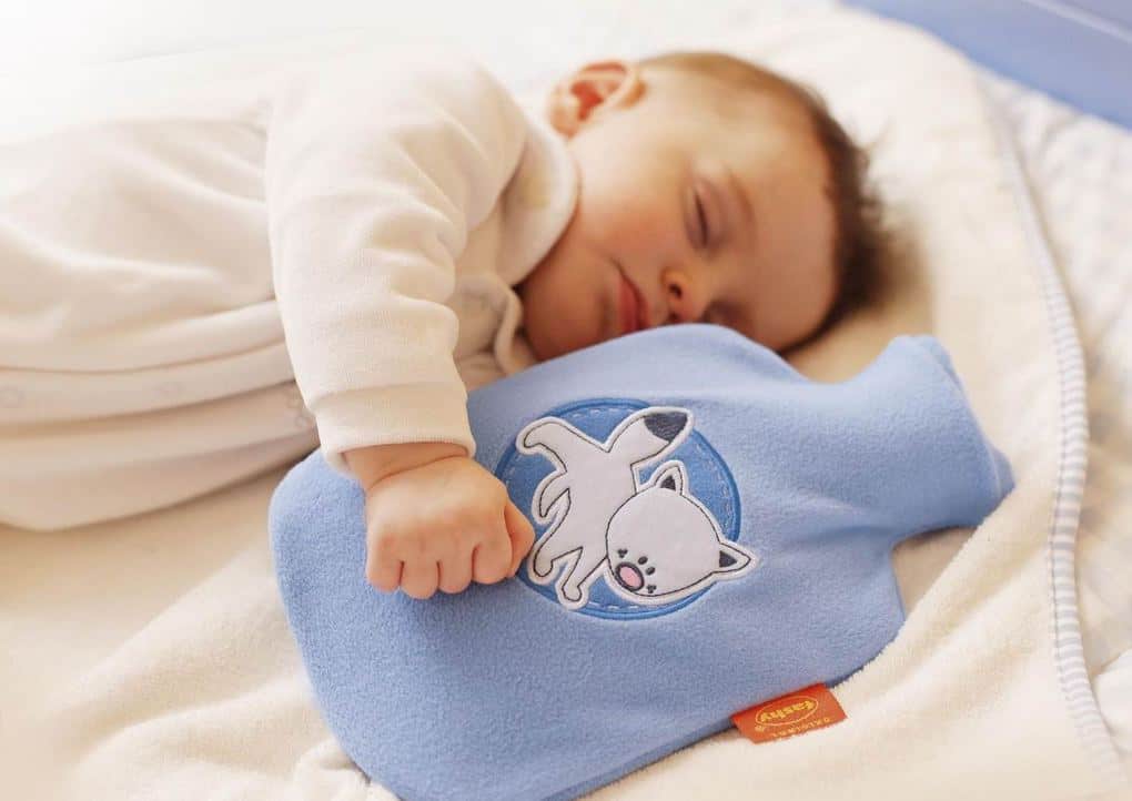 Грелка действует успокаивающе, т.к. источает тепло, которое было в материнской утробе.