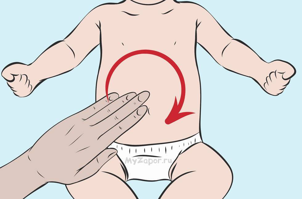 Если есть признаки запора у грудничка, можно ему помассировать животик круговыми движениями по часовой стрелке. Руки должны быть при этом тёплыми.