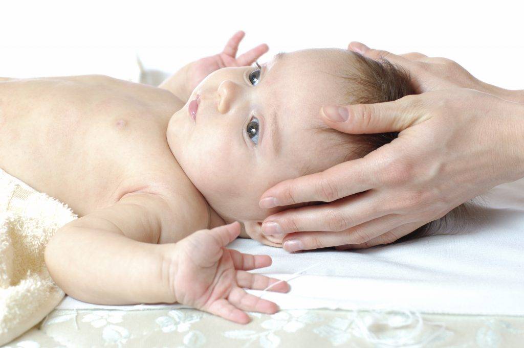 Если вы заметили гипертонус в районе шеи, нужно положить ребенка на спинку и подложить руку под его голову, затем приподнять затылок и подтянуть подбородок к груди. Если гипертонус все-таки присутствует, вы заметите сильное сопротивление.