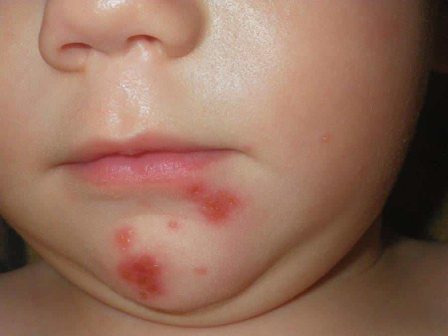 Для стрептодермии характерны высыпания в области шеи, а также рта и носа. Вызывается болезнь бактериями, которые попадают в открытые раны. У совсем маленьких детей болезнь может развиться, когда малыш сосет палец либо ковыряет в носу, невылеченая потница также может привести к патологическому процессу.