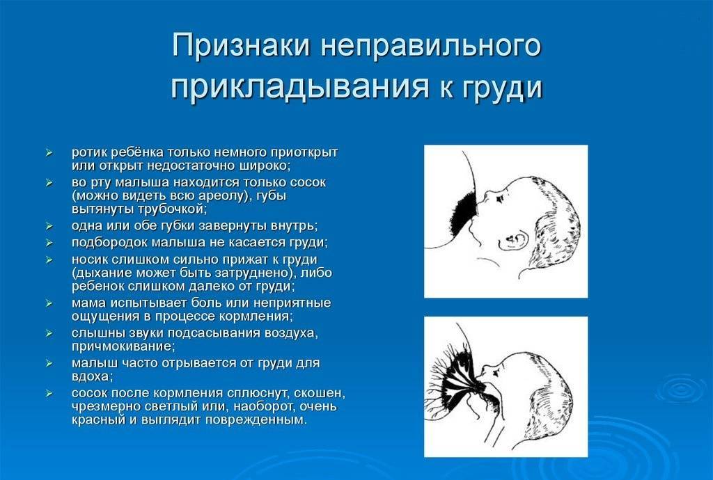 Показатели неверного прикладывания к груди