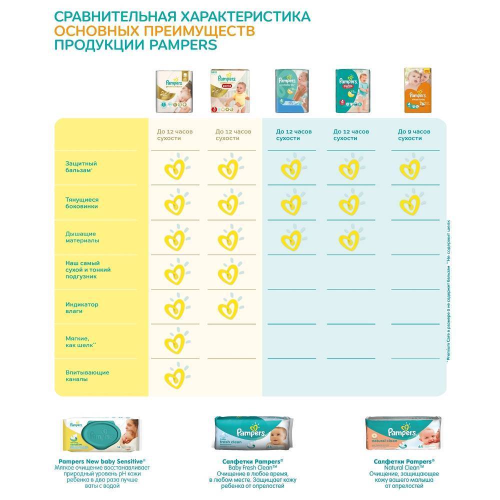 Сравнительная таблица основных преимуществ подгузников Pampers поможет маме определиться с выбором