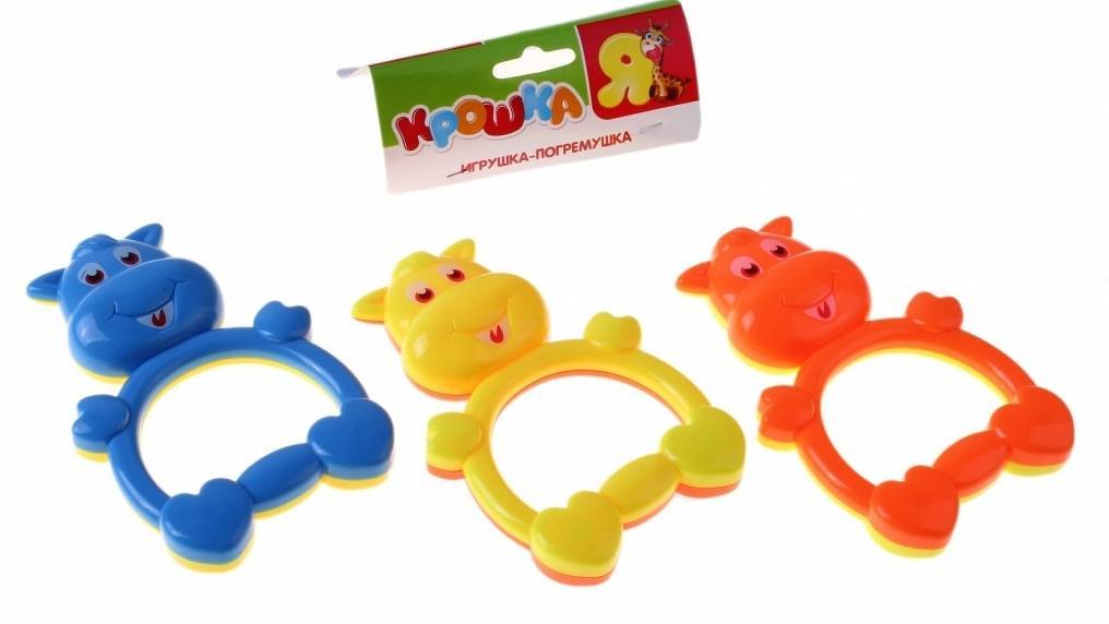 Яркий цвет погремушки и ее звучание привлекает внимание младенца