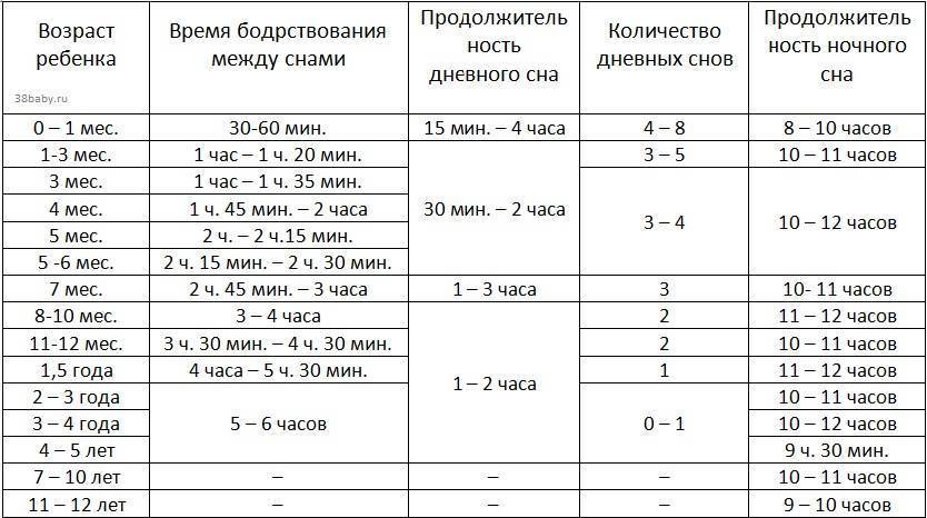 | Возраст | Дневной сон | Ночной сон | Всего |