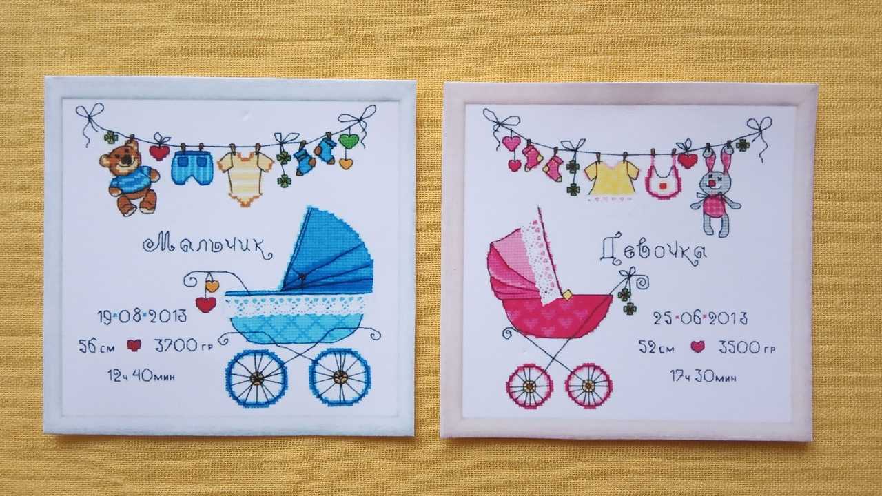 Оригинальный рукотворный подарок для деток — вышитая крестом метрика.