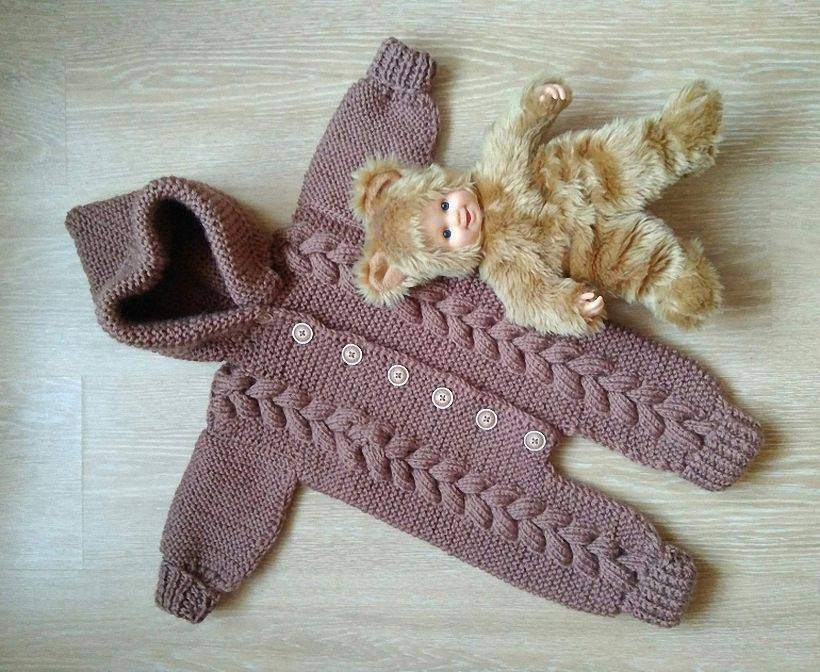 На зиму, помимо трикотажных изделий понадобятся теплые, вязаные комбинезоны и для прогулок, и для походов в гости и к врачу, и просто для игр по дому. Связать вот такой уютный и теплый комбинезончик