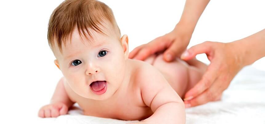 - Переворачивают младенца на спину и снова совершают поступательные движения, постепенно увеличивая их интенсивность.