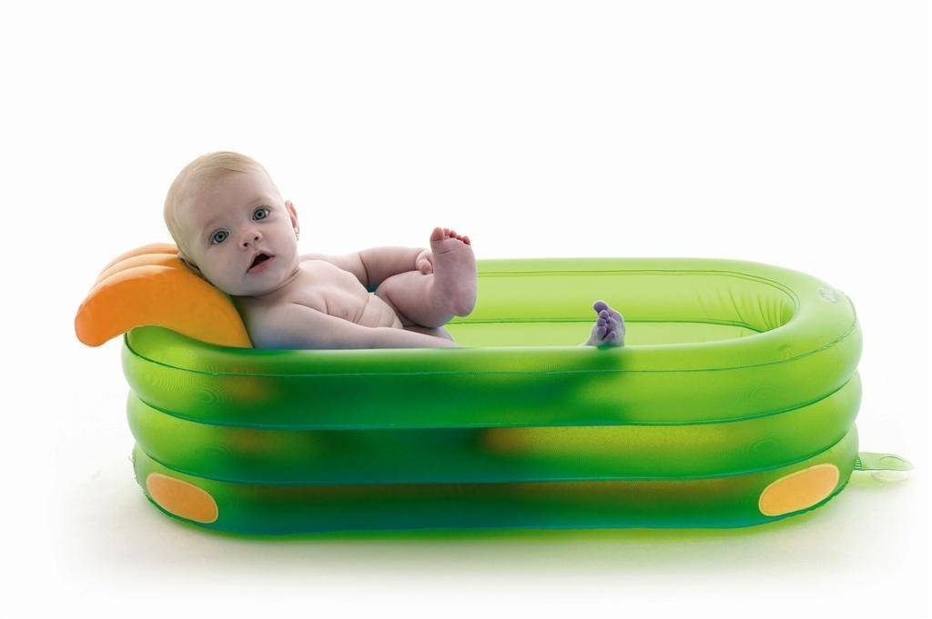 - Надувная. Пригодится для поездок или в качестве бассейна. Дома надувать ее ежедневно – дело хлопотное, но если свободного места для хранения детской ванны нет, то надувная емкость будет отличным выходом. За безопасность крохи можно не беспокоиться, поскольку самопроизвольный выход воздуха из надувного изделия исключен благодаря кольцевой структуре и безопасным клапанам;