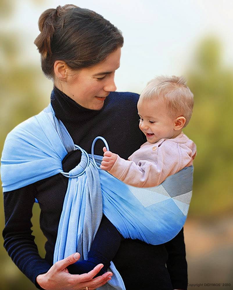 Слинг с кольцами кажется самым простым и понятным среди остальных слингов: он короткий, ничего не нужно заматывать, просто продеть ткань в два кольца и можно идти! Но у него есть свои особенности: нагрузка идет на одно плечо носящего, и долго в нем носить ребенка тяжело, а с больной спиной так и вовсе небезопасно. Поэтому слинг с кольцами отлично подходит для коротких перебежек: донести ребёнка до автокресла в машине и обратно, укачать перед засыпанием, донести до площадки во дворе малыша, только начинающего ходить.